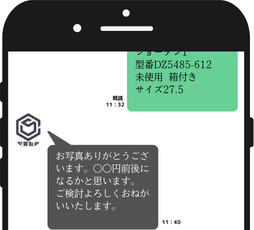 宅配買取劇場のアカウントに画像、ブランド名、型番、サイズを送信してください。